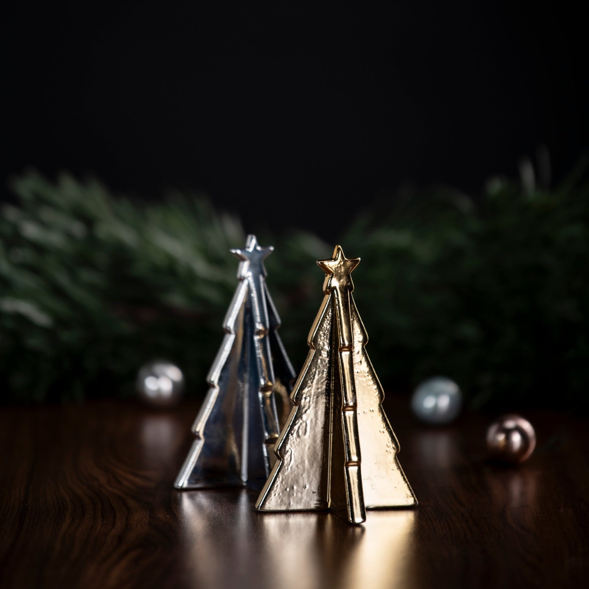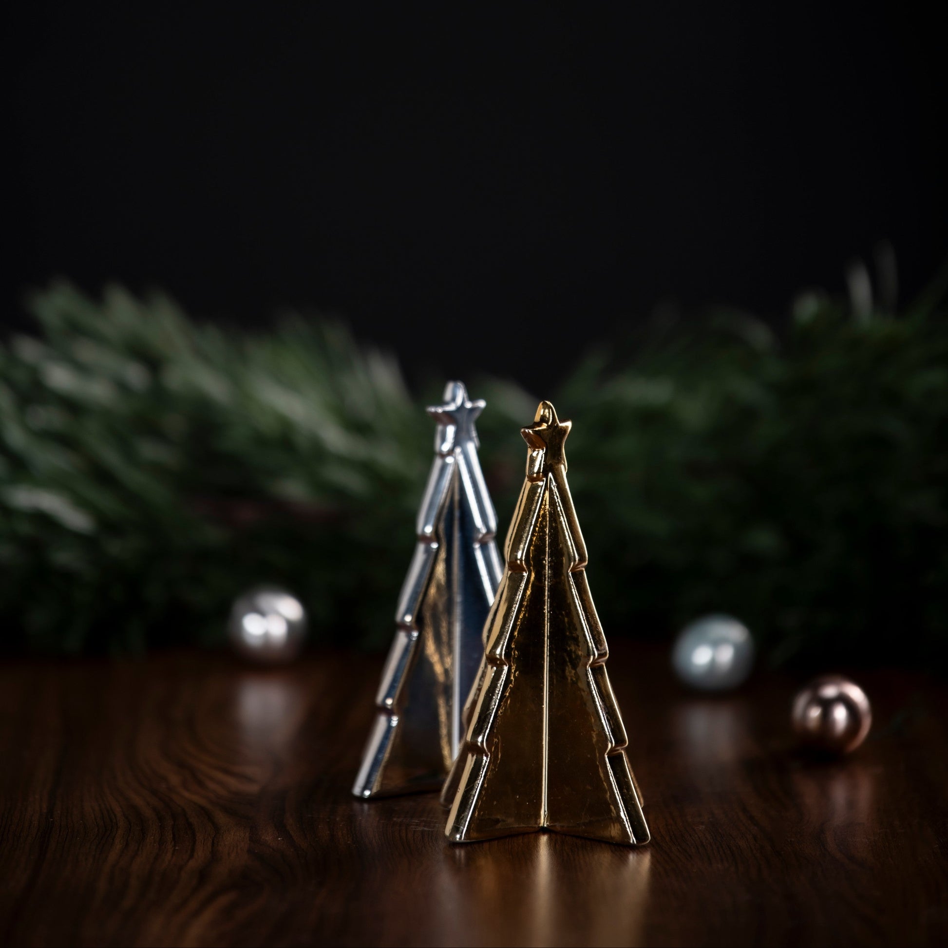 The Gilded Glow Tree shines with a rich, golden or silver finish that catches and reflects the festive light. Sculpted in smooth ceramic, its clean lines and mirror-like sheen make it a timeless accent for mantels, consoles, or tablescapes.