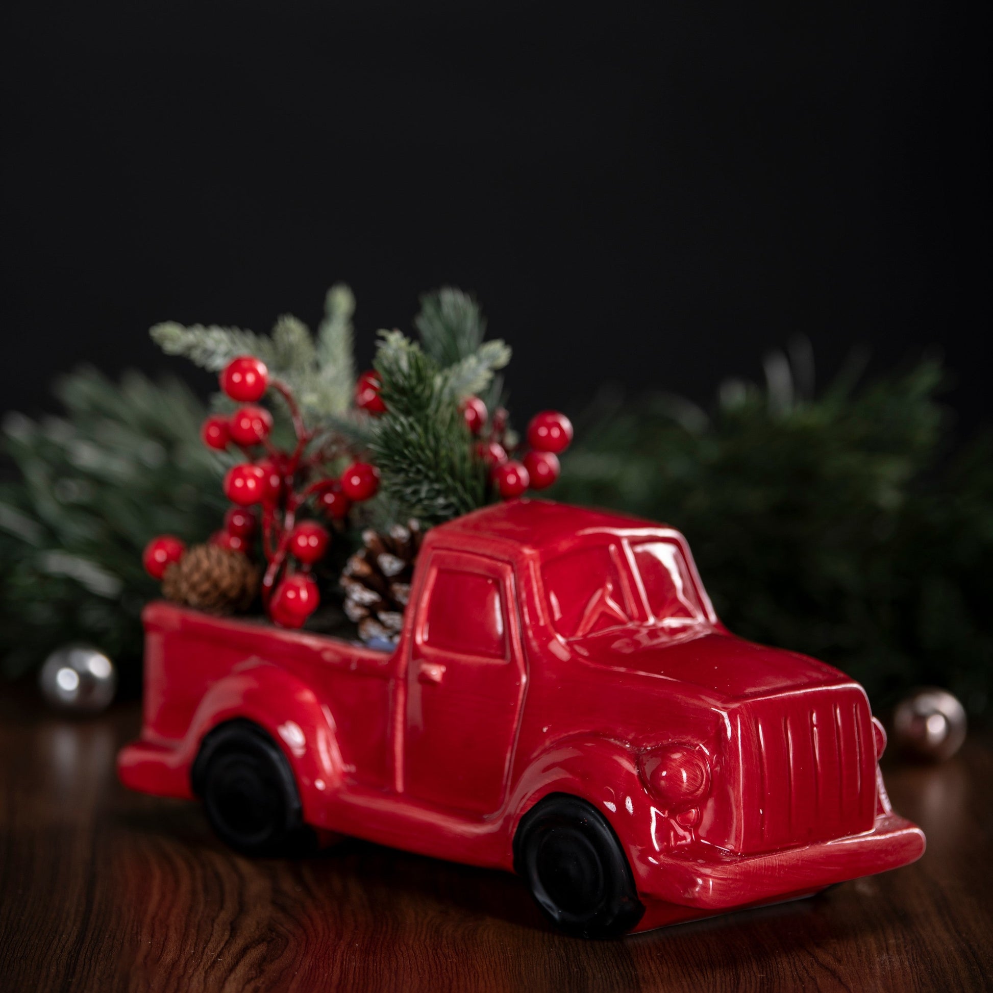 Loaded with festive cheer, The Jolly Haul Truck is ready to roll into your holiday décor. Crafted from ceramic and filled with sprigs of pine, berries, and a frosted pinecone, it brings a cheerful touch to tables, consoles, or shelves. Available in both classic red and crisp white, it’s a little reminder that Christmas magic always finds its way home.
